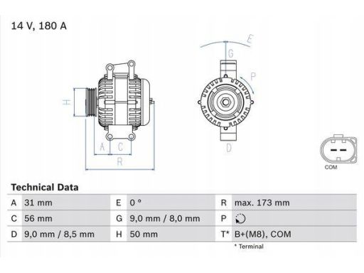 ALTERNATOR (14V, 180A) PASUJE DO: MERCEDES C (W204), CLK (A209), CLK (C209), CLS (C219), E (A207), E (C207), E T-MODEL (S211), E T-MODEL (S212), E (W211), E (W212), G (W463) 2.5-5.5 10.04-12.16