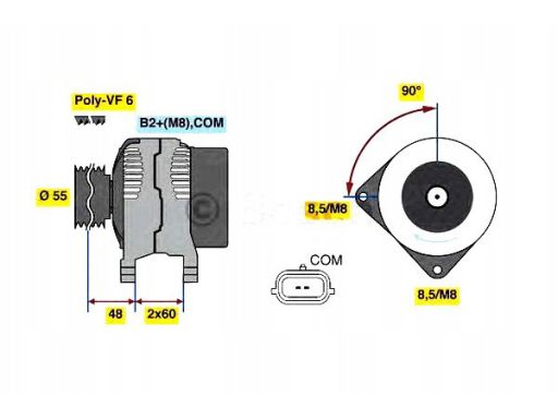 ALTERNATOR (14V, 150A) PASUJE DO: DACIA DUSTER, LODGY, RENAULT CLIO III, CLIO III/HATCHBACK, CLIO IV, CLIO IV/HATCHBACK, FLUENCE, GRAND SCENIC II, GRAND SCENIC III, KANGOO BE BOP 1.5D-1.6LPG 08.03-