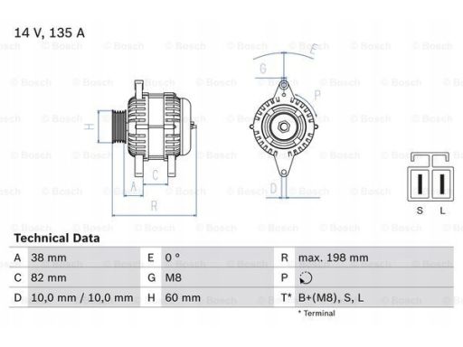 ALTERNATOR (14V, 135A) PASUJE DO: RVI MASCOTT, NISSAN CABSTAR, INTERSTAR, ATLEON, OPEL MOVANO A, RENAULT MASTER II 3.0D 10.03-