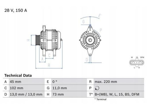 ALTERNATOR (28V, 150A) PASUJE DO: VOLVO FH, FH II, FH III, FM, FM II, FM III, FMX II, FMX III D11A-330-G13C460 09.05-