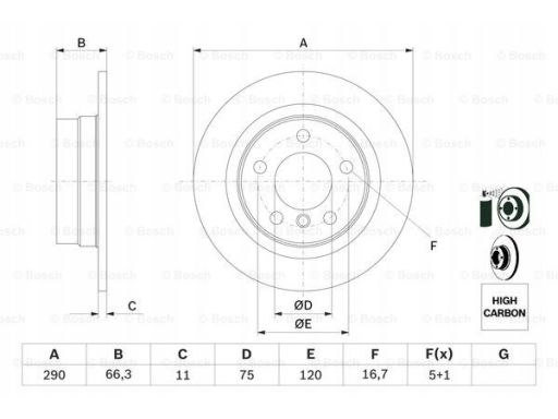 TARCZA HAMULCOWA TYŁ L/P PASUJE DO: BMW 1 (F20), 1 (F21), 2 (F22, F87), 2 (F23) 1.5-2.0D 07.11-06.21