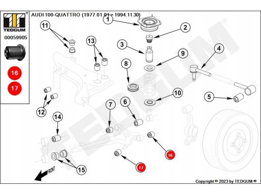 00059905 Silentblock Wahacza Tył L/P (Dół Tył, Do Piasty) Pasuje Do: A