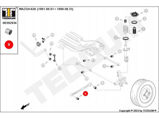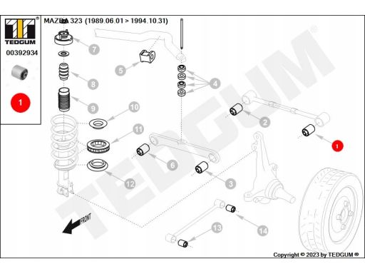 SILENTBLOCK WAHACZA TYŁ L/P (TYŁ/Z PRZODU, WZDŁUŻNEGO) PASUJE DO: KIA CLARUS, MAZDA 323 C IV, 323 F IV, 323 S IV, 626 IV, XEDOS 6 1.3-2.5 06.89-11.01