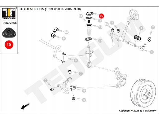 PODUSZKA KOLUMNY MC PHERSONA PRZÓD L/P PASUJE DO: TOYOTA AVENSIS, CELICA, COROLLA, COROLLA VERSO 1.3-2.0D 09.97-11.08