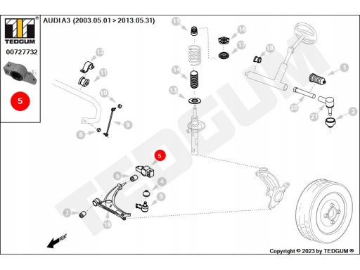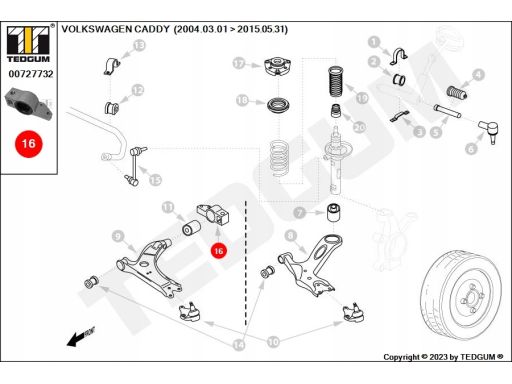 SILENTBLOCK WAHACZA PRZÓD Z TYŁU P PASUJE DO: AUDI A3, SEAT ALTEA, ALTEA XL, LEON, TOLEDO III, SKODA OCTAVIA II, VW CADDY III, CADDY III/MINIVAN, EOS, GOLF PLUS 1.2-ELECTRIC 02.03-05.16