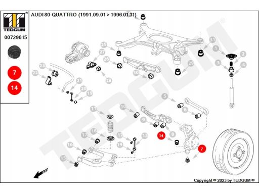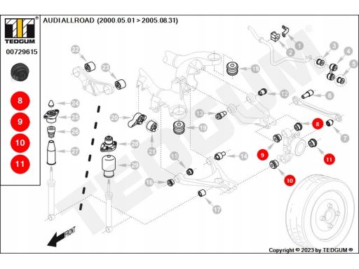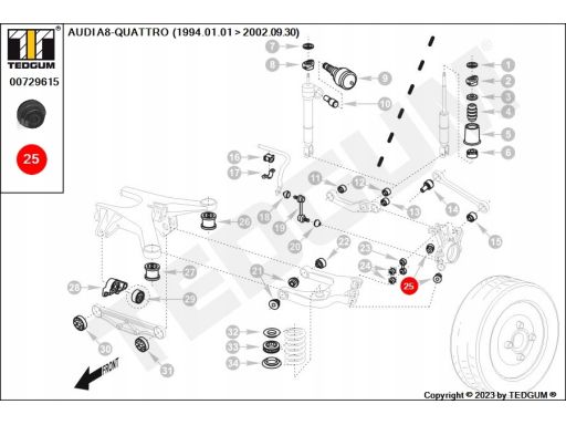 SILENTBLOCK WAHACZA TYŁ L/P (GÓRA TYŁ) PASUJE DO: AUDI 80 B4, A6 C5, A8 D2, ALLROAD C5, VW PASSAT B5, PASSAT B5.5 1.8-6.0 09.91-08.05