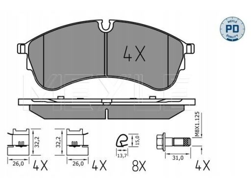 KLOCEK HAMULCOWY KPL. PRZÓD (ZE ŚRUBAMI), PASUJE DO: MAN TGE, VW CRAFTER, GRAND CALIFORNIA CAMPER 2.0D 09.16-