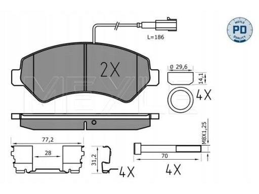 KLOCEK HAMULCOWY KPL. PRZÓD (Z DODATKAMI, Z PODKŁADKĄ WYTŁUMIAJĄCĄ, ZE ŚRUBAMI), PASUJE DO: CITROEN JUMPER II, FIAT DUCATO, OPEL MOVANO C, PEUGEOT BOXER 2.0D-3.0D 04.06-