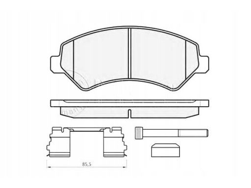 KLOCEK HAMULCOWY KPL. PRZÓD (Z DODATKAMI, Z PODKŁADKĄ WYTŁUMIAJĄCĄ, ZE ŚRUBAMI), PASUJE DO: CITROEN JUMPER II, FIAT DUCATO, OPEL MOVANO C, PEUGEOT BOXER 2.0D-3.0D 04.06-