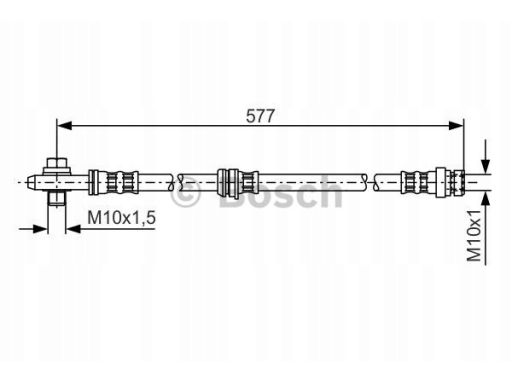 PRZEWÓD HAMULCOWY ELASTYCZNY PRZÓD L/P (DŁ. 565MM,ŚR. 10,15MM, M10X1,5/M10X1) PASUJE DO: AUDI A3, SEAT ALTEA, ALTEA XL, LEON, TOLEDO III, SKODA OCTAVIA II, SUPERB II, YETI 1.2-3.6 02.03-04.18