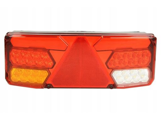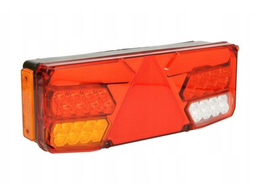 LAMPA TYŁ L (LED, 24V, Z KIERUNKOWSKAZEM, ZE ŚWIATŁEM PRZECIWMGIELNYM, ZE ŚWIATŁEM COFANIA, ZE ŚWIATŁEM STOPU, ŚWIATŁO POZYCYJNE, ODBLASK TRÓJKĄTNY, OBRYSOWE BOCZNE, Z OBCIĄŻENIEM KIERUNKOWSKAZU, Z OB