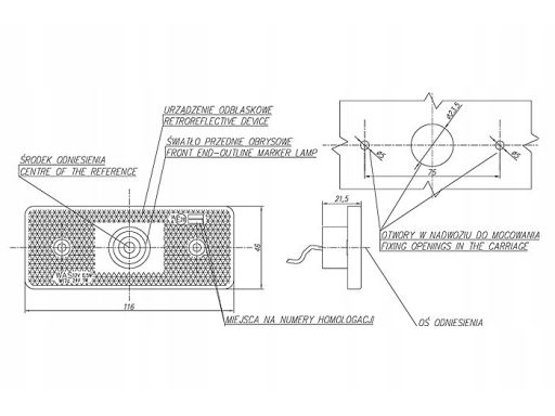 ŚWIATŁO OBRYSOWE L/P, KSZTAŁT: PROSTOKĄTNY, BIAŁY, LED, 24V