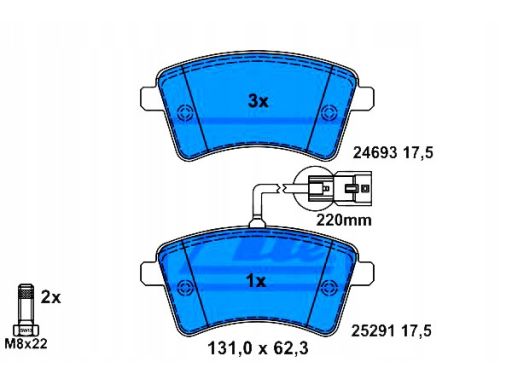 KLOCEK HAMULCOWY KPL. PRZÓD (ZE ŚRUBAMI PROWADZĄCYMI ZACISKU HAMULCOWEGO), PASUJE DO: RENAULT KANGOO BE BOP, KANGOO EXPRESS, KANGOO II 1.2-ELECTRIC 02.08-