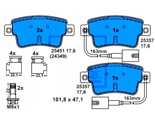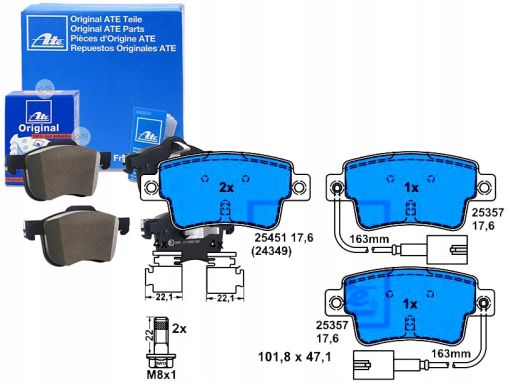 KLOCEK HAMULCOWY KPL. TYŁ (Z DODATKAMI, ZE ŚRUBAMI PROWADZĄCYMI ZACISKU HAMULCOWEGO), PASUJE DO: ABARTH GRANDE PUNTO, PUNTO, PUNTO EVO, FIAT GRANDE PUNTO, PUNTO, PUNTO EVO 0.9-1.6D 07.06-