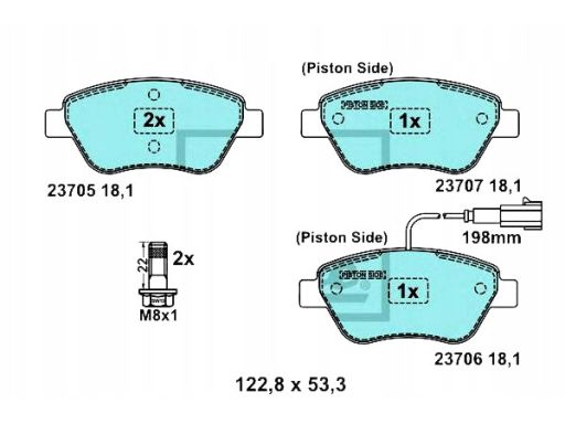 KLOCEK HAMULCOWY KPL. CERAMICZNY PRZÓD , PASUJE DO: FIAT BRAVO II, GRANDE PUNTO, PUNTO EVO, SIENA, STILO 1.2-1.6 11.00-