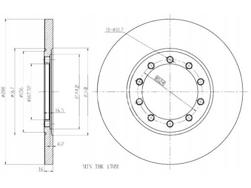 TARCZA HAM. FORD T. TRANSIT 06- 280X16 WInformacje dodatkowe: