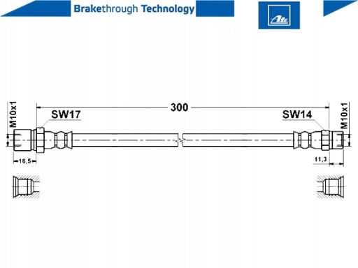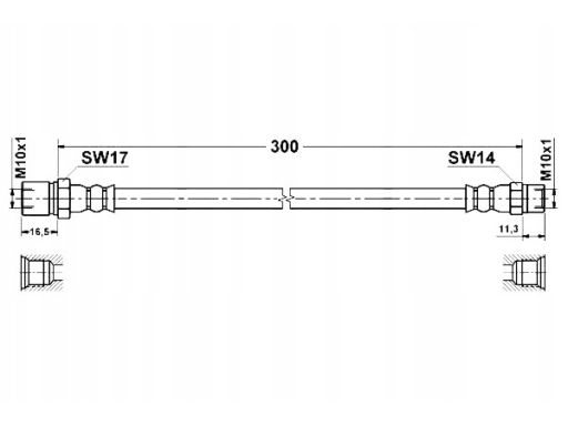PRZEWÓD HAMULCOWY ELASTYCZNY PRZÓD L/P (DŁ. 300MM, M10X1/M10X1) PASUJE DO: PORSCHE 911, 911 TARGA, 914 1.7-3.3 01.69-11.90