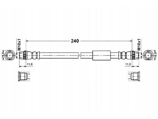 PRZEWÓD HAMULCOWY ELASTYCZNY TYŁ L/P (DŁ. 240MM, M10X1/M10X1) PASUJE DO: CITROEN JUMPY II, FIAT SCUDO, PEUGEOT EXPERT, EXPERT TEPEE 1.6D/2.0/2.0D 11.06-