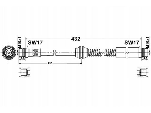 PRZEWÓD HAMULCOWY ELASTYCZNY TYŁ L/P (DŁ. 432MM, M10X1/M10X1) PASUJE DO: VW CADDY ALLTRACK, CADDY ALLTRACK/MINIVAN, CADDY III, CADDY III/MINIVAN, CADDY IV, CADDY IV/MINIVAN 1.0-2.0D 02.98-