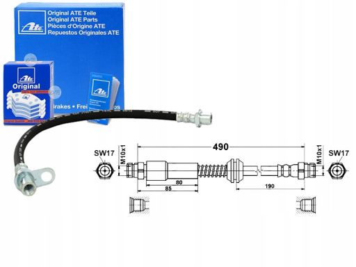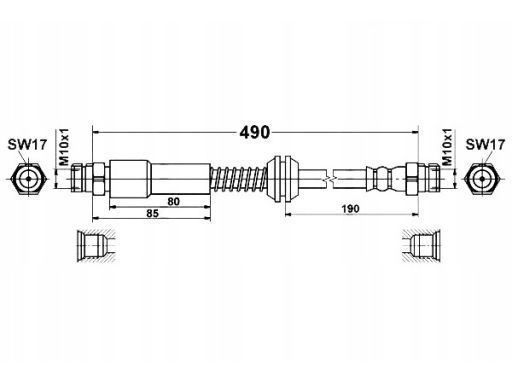 PRZEWÓD HAMULCOWY ELASTYCZNY TYŁ L/P (DŁ. 490MM, M10X1/M10X1) PASUJE DO: VW CADDY III, CADDY III/MINIVAN, CADDY/MINIVAN 1.2-2.0D 02.98-05.15