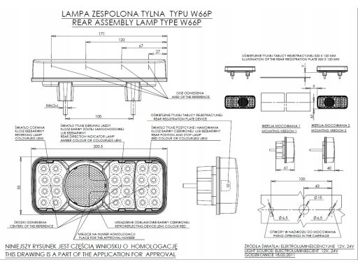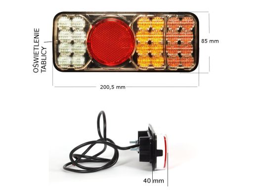 LAMPA TYŁ P (12/24V, CZERWONY, Z PODŚWIETLENIEM TABLICY)