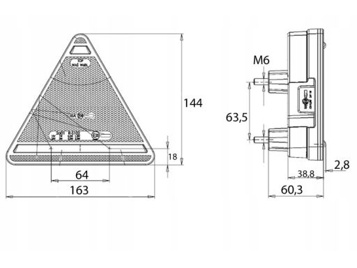 LAMPA TYŁ L (LED, 12/24V, CZERWONY, TRÓJKĄTNA)
