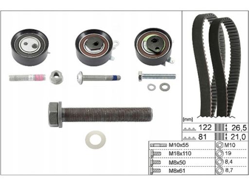 ROZRZĄD KPL. (PASEK + ROLKA) PASUJE DO: VOLVO 850, S70, S80 I, V70 I, V70 II, VW LT 28-35 II, LT 28-46 II, TRANSPORTER T4 2.5D 08.95-08.07