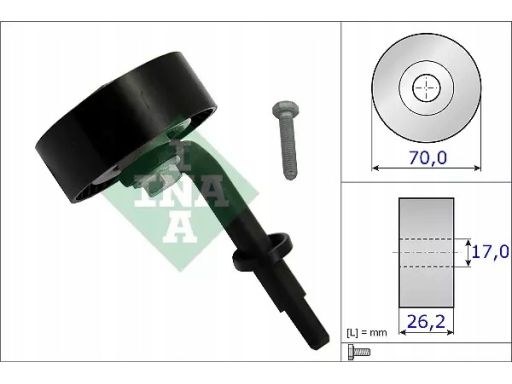 ROLKA NAPINAJĄCA PASEK WIELOROWKOWY PASUJE DO: BMW 3 (E46), 3 (E90), 3 (E91), 3 (E92), 5 (E60), 5 (E61), 6 (E63), 6 (E64), 7 (E65, E66, E67), X3 (E83), X5 (E53) 2.0D/2.5D/3.0D 04.98-03.13