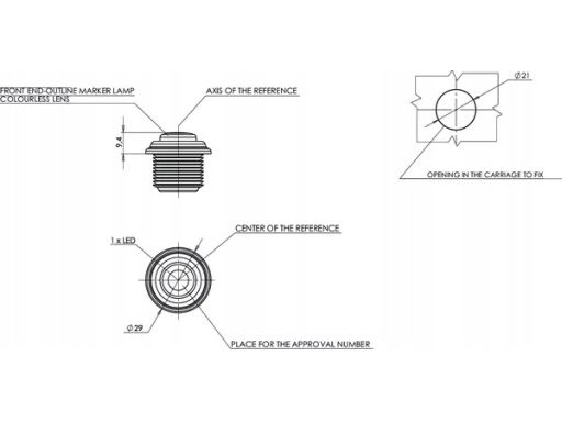 ŚWIATŁO OBRYSOWE L/P, KSZTAŁT: OKRĄGŁY, BIAŁY, LED, WPUSZCZANA, DŁUGOŚĆ PRZEWODU 220MM, 12/24V