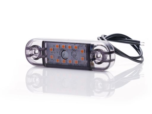 ŚWIATŁO OBRYSOWE L/P, KSZTAŁT: OWALNY, DYMIONY/POMARAŃCZOWY, LED, WYS. 24,2MM, SZER. 83,8MM, GŁ. 10,4MM, POWIERZCHNIOWA, DŁUGOŚĆ PRZEWODU 230MM, 12/24V (IP66/IP68)