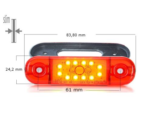 ŚWIATŁO OBRYSOWE L/P, KSZTAŁT: OWALNY, CZERWONY, LED, WYS. 24,2MM, SZER. 83,8MM, GŁ. 10,4MM, POWIERZCHNIOWA, DŁUGOŚĆ PRZEWODU 230MM, 12/24V (IP66/IP68)
