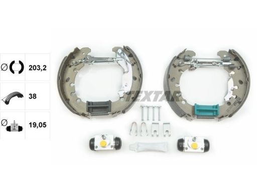 TEXTAR SZCZĘKA HAMULCOWA Z CYLINDERKAMI FIAT IDEA 1.2 16V, 1.3JTD, MULTIJET, LANCIA MUSA 1.4 09.05-, OPEL CORSA D 1.0, 1,2 07.06- (203,2X38)