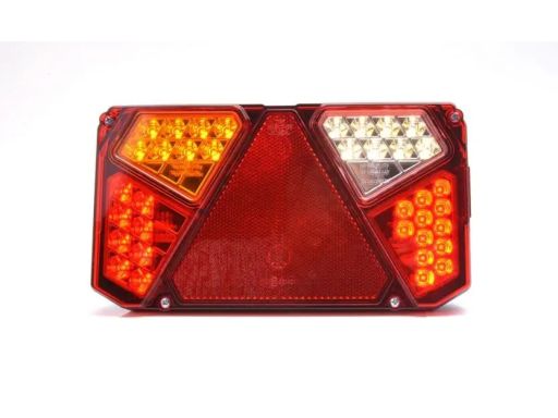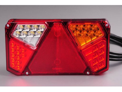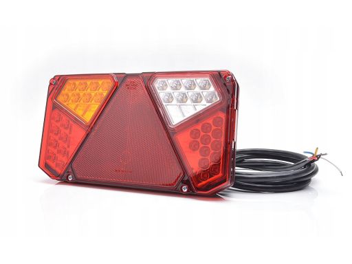 LAMPA TYŁ L (LED, 12/24V, Z KIERUNKOWSKAZEM, ZE ŚWIATŁEM PRZECIWMGIELNYM, ZE ŚWIATŁEM COFANIA, ZE ŚWIATŁEM STOPU, ŚWIATŁO POZYCYJNE, ODBLASK TRÓJKĄTNY, DŁUGOŚĆ PRZEWODU: 0,2M)