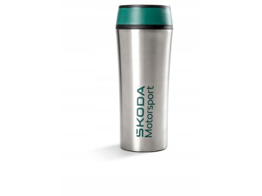 Wykonany jest z dwuściennej stali nierdzewnej, z plastikową zakrętką ułatwiającą napełnianie. Korpus kubka jest srebrny ze szmaragdowo zielonym nadrukiem Škoda Motorsport o wymiarach 7 x 2,5 cm, plastikowe wieczko jest w kolorze szmaragdowo zielonym i czarnym.