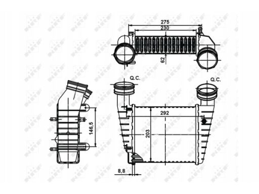 CHŁODNICA POWIETRZA DOLOTOWEGO PASUJE DO: SKODA SUPERB I, VW PASSAT B5, PASSAT B5.5 1.9D/2.0D 02.00-03.08
