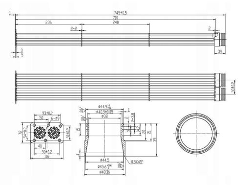CHŁODNICA SPALIN (99MM X 99MM X 44MM, RURKI, SAM WKŁAD, DOBÓR WG WYMIARÓW) PASUJE DO: MAN EL, EM, G90, HOCL, L2000, LION´S CITY, M 2000 L, M 2000 M, M90, NG, NL, NM, NÜ D0226MF-D0836LUH51 08.87-