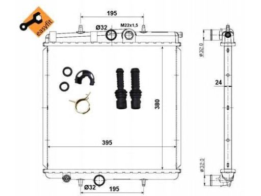CHŁODNICA SILNIKA (Z ELEMENTAMI MONTAŻOWYMI EASY FIT) PASUJE DO: PEUGEOT 206, 206+ 1.1-1.6 08.98-