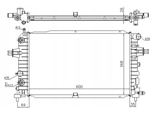CHŁODNICA SILNIKA PASUJE DO: OPEL ASTRA G, ZAFIRA B 1.7D/1.8/2.2 02.98-12.12