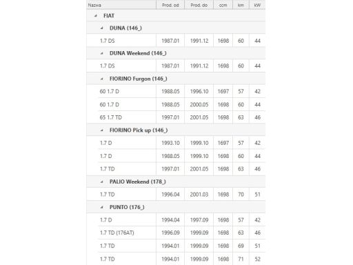 PASEK ROZRZĄDU PASUJE DO: FIAT DUNA, FIORINO, FIORINO/MINIVAN, PALIO, PENNY/KOMBI, PUNTO, STRADA, UNO, INNOCENTI ELBA 1.3D/1.7D 06.83-