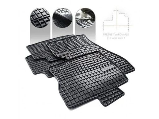 Oferowane dywaniki zostały precyzyjnie zaprojektowane do kształtu płyty podłogowej biorąc pod uwagę nie tylko markę / model samochodu, ale także rocznik oraz w uzasadnionych przypadkach wersję nadwozia. Dywaniki wytwarzane są z najwyższej jakości, trwałej i wzmocnionej mieszanki gumowej niezawierającej substancji szkodliwych dla zdrowia, co zapewnia bezpieczeństwo użytkowania. Estetyczny kołnierz (brzeg) ochronny dookoła dywaników skutecznie zatrzymuje wodę i brud, zabezpieczając oryginalną tapicerkę samochodową przed zabrudzeniem. Dywaniki od spodu posiadają zaprojektowane malutkie kolce, które w dodatkowy sposób chronią je przed przesuwaniem. Dywanik kierowcy został dodatkowo wzmocniony w miejscu najbardziej newralgicznym (miejsce styku pięty z powierzchnią dywanika) tak, aby zabezpieczyć dywanik przed przetarciem.