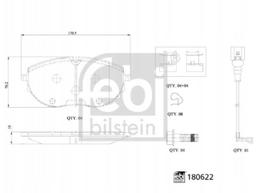 KLOCEK HAMULCOWY KPL. PRZÓD (Z PODKŁADKĄ WYTŁUMIAJĄCĄ, ZE ŚRUBAMI PROWADZĄCYMI ZACISKU HAMULCOWEGO), PASUJE DO: VW CALIFORNIA T6 CAMPER, MULTIVAN T6, TRANSPORTER T6 2.0/2.0D/ELECTRIC 04.15-