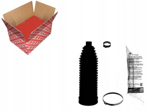 OSŁONA PRZEKŁADNI KIEROWNICZEJ L/P (DŁ.210MM 16MM/62MM, SMAR + OPASKI) PASUJE DO: BMW 5 (F10), 5 (F11), 5 GRAN TURISMO (F07), 6 (F12), 6 (F13), 6 GRAN COUPE (F06), 7 (F01, F02, F03 1.6-6.0 05.08-10.18