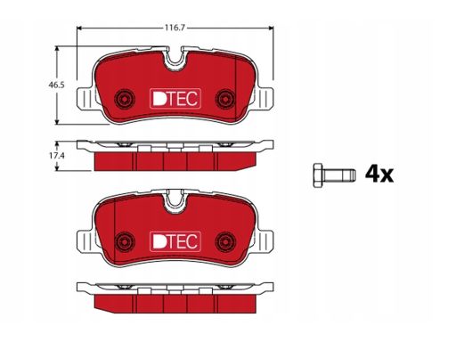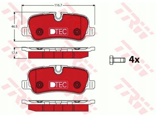 KLOCEK HAMULCOWY KPL. CERAMICZNY TYŁ (Z DODATKAMI, ZE ŚRUBAMI PROWADZĄCYMI ZACISKU HAMULCOWEGO), PASUJE DO: LAND ROVER DISCOVERY III, DISCOVERY IV, RANGE ROVER III 1.8-5.0 07.00-12.18