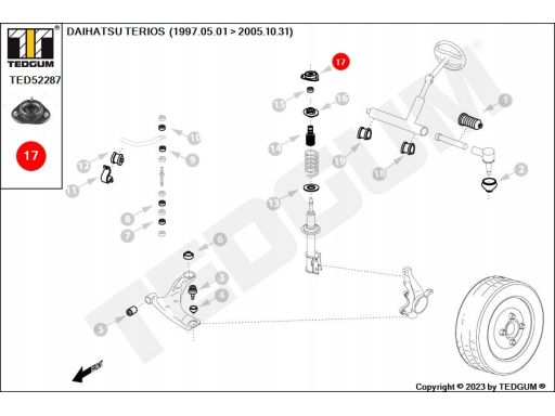 PODUSZKA KOLUMNY MC PHERSONA PRZÓD L/P PASUJE DO: DAIHATSU TERIOS 1.3 10.97-10.06