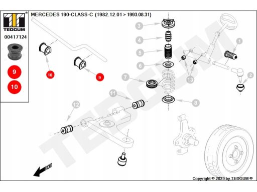 SILENTBLOCK STABILIZATORA PRZÓD/WEWNĄTRZ/ZEWNĄTRZ L/P (23MM) PASUJE DO: MERCEDES 124 (A124), 124 (C124), 124 T-MODEL (S124), 124 (W124), 190 (W201) 1.8-5.0 10.82-08.93