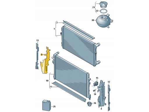 - 1x 5F0121284H (Kierownica powietrza chłodnicy, pozycja numer 5 na schemacie)