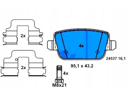KLOCEK HAMULCOWY KPL. TYŁ (Z DODATKAMI, ZE ŚRUBAMI PROWADZĄCYMI ZACISKU HAMULCOWEGO), PASUJE DO: FORD FOCUS II, GALAXY II, GALAXY MK II, KUGA I, MONDEO IV, S-MAX 1.6-2.5 05.06-06.15