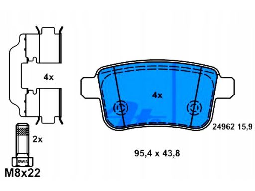 KLOCEK HAMULCOWY KPL. TYŁ (Z DODATKAMI, ZE ŚRUBAMI PROWADZĄCYMI ZACISKU HAMULCOWEGO), PASUJE DO: MERCEDES CITAN MIXTO (DOUBLE CABIN), CITAN (MPV), CITAN/MINIVAN (W415) 1.2-ELECTRIC 06.05-