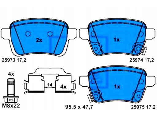 KLOCEK HAMULCOWY KPL. TYŁ , PASUJE DO: FIAT 500L, TIPO, OPEL ADAM, CORSA E, CORSA E/HATCHBACK 1.0-1.6D 10.12-