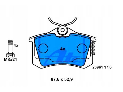 KLOCEK HAMULCOWY KPL. TYŁ (ZE ŚRUBAMI PROWADZĄCYMI ZACISKU HAMULCOWEGO), PASUJE DO: AUDI A1, A2, A3, A4 B5, A4 B6, A4 B7, A6 C5, A8 D2, ALLROAD C5, TT, CITROEN BERLINGO 1.0-ELECTRIC 08.83-